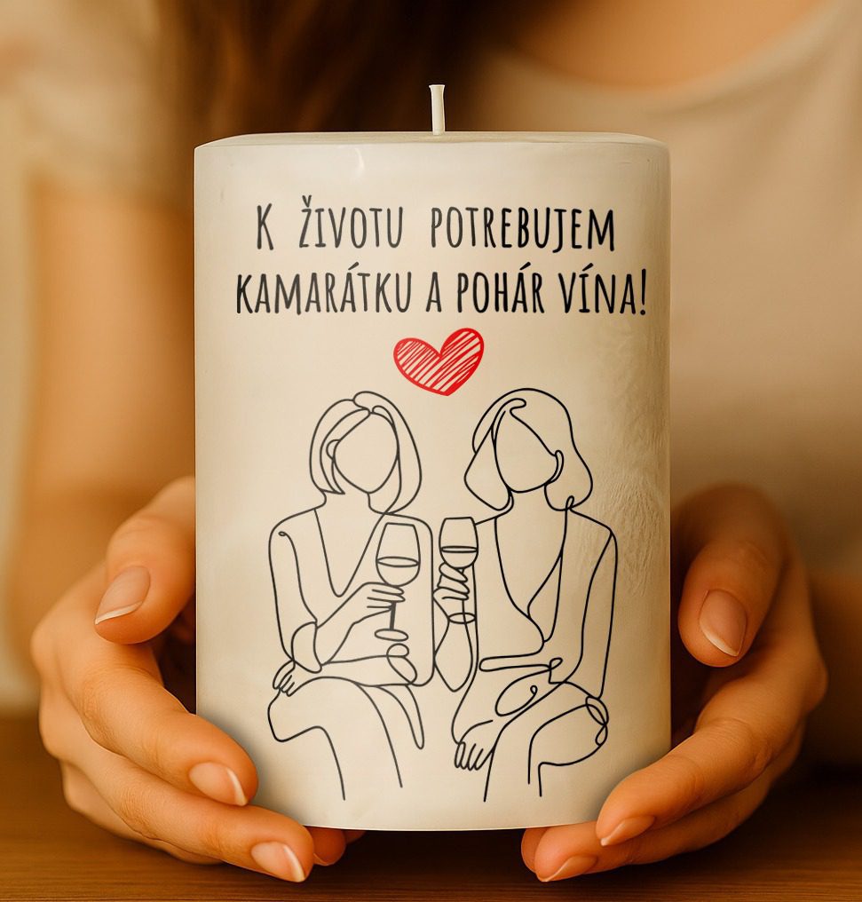 Dekoračná palmová sviečka – K životu potrebujem kamarátku a pohár vína!