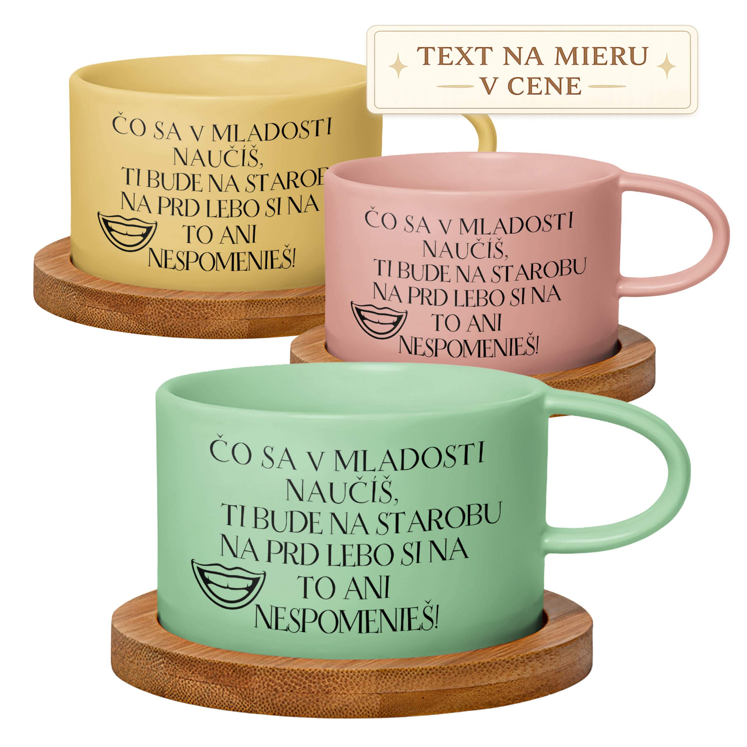 Originálny hrnček s nápisom „Čo sa v mladosti naučíš, ti bude na starobu na prd, lebo si na to ani nespomenieš“ je perfektný darček pre každého, kto si rád vychutná kávu alebo čaj s úsmevom.