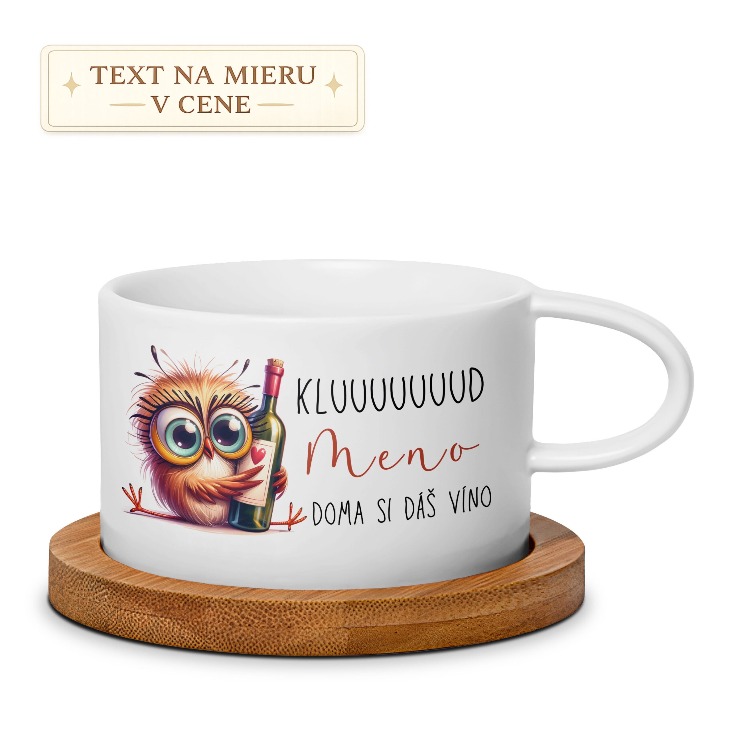 Do dizajnu je možné doplniť meno, takže hrnček bude úplne osobný a jedinečný. Milá ilustrácia sovičky s vínom dodáva hrnčeku ešte viac humoru a originality.