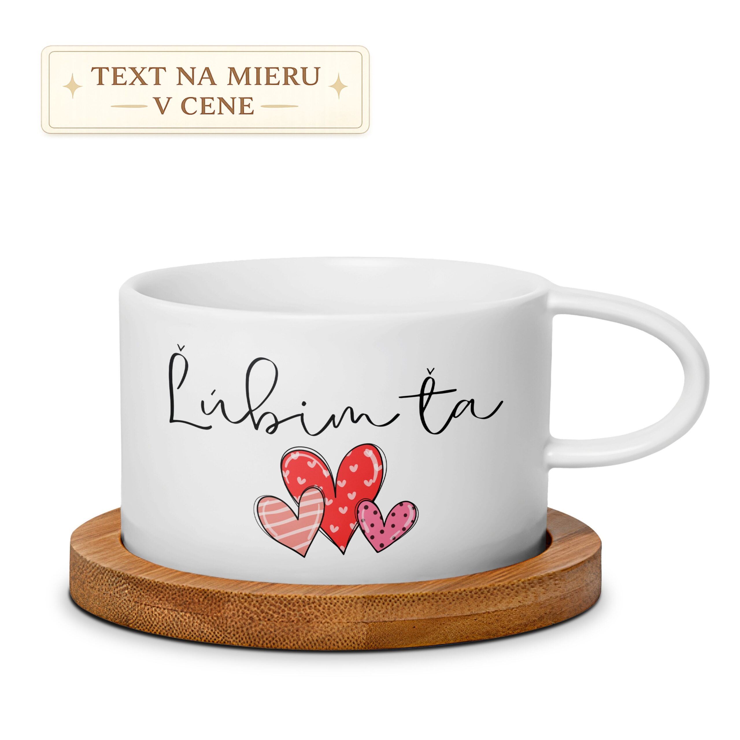 Hrnček s nápisom „Ľúbim ťa“ doplnený o motív srdiečok, ktorý je krásnym darčekom z lásky.