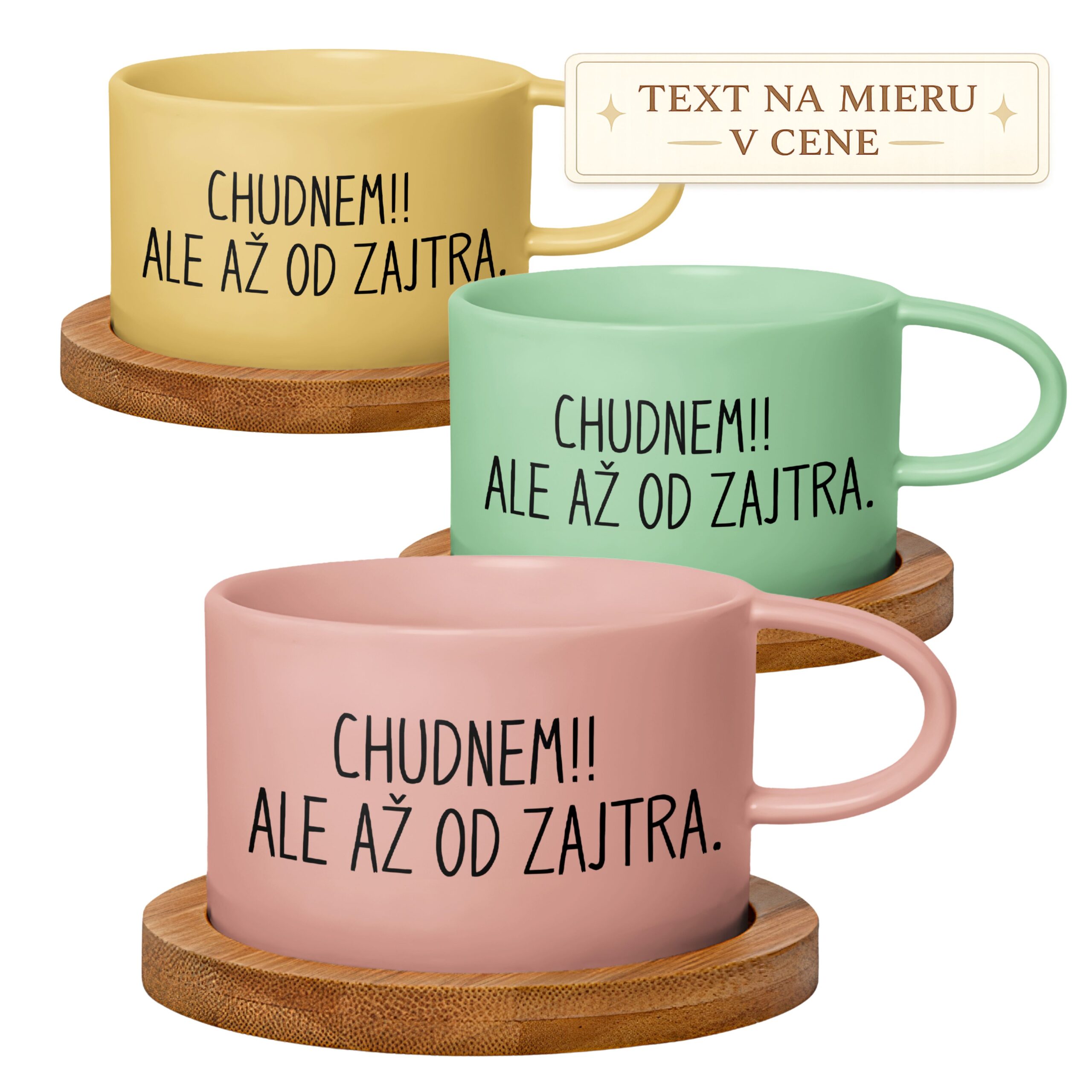 Hrnček makrónka s nápisom „Chudnem!! Ale až od zajtra.“ je vtipný a originálny doplnok, ktorý pobaví už na prvý pohľad. Je ideálny pre všetkých, ktorí milujú humor zo života, vtipné hlášky a radi si spríjemnia deň obľúbenou kávou alebo čajom.