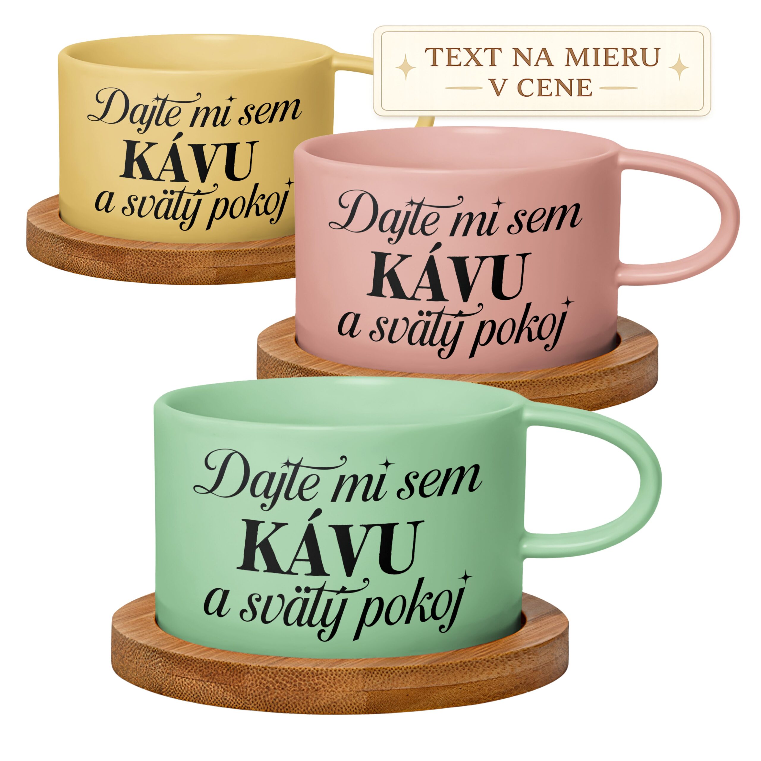 Hrnček makrónka s nápisom „Dajte mi sem kávu a svätý pokoj“ je ideálny pre všetkých, ktorí si chcú svoje ráno vychutnať bez zbytočného ruchu. Vtipný text v spojení s jemným pastelovým dizajnom vytvára štýlový a originálny hrnček na každý deň.