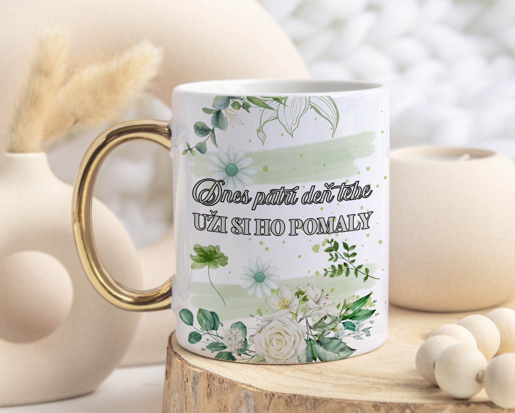 Hrnček s pokojnou myšlienkou „Dnes patrí deň tebe. Uži si ho pomaly.“