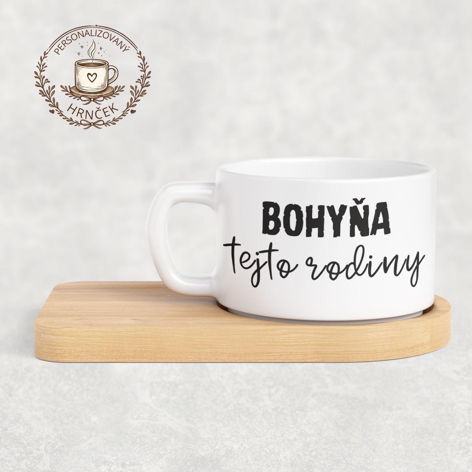 Matný hrnček DUO s bambusovou podšálkou – Bohyňa tejto rodiny