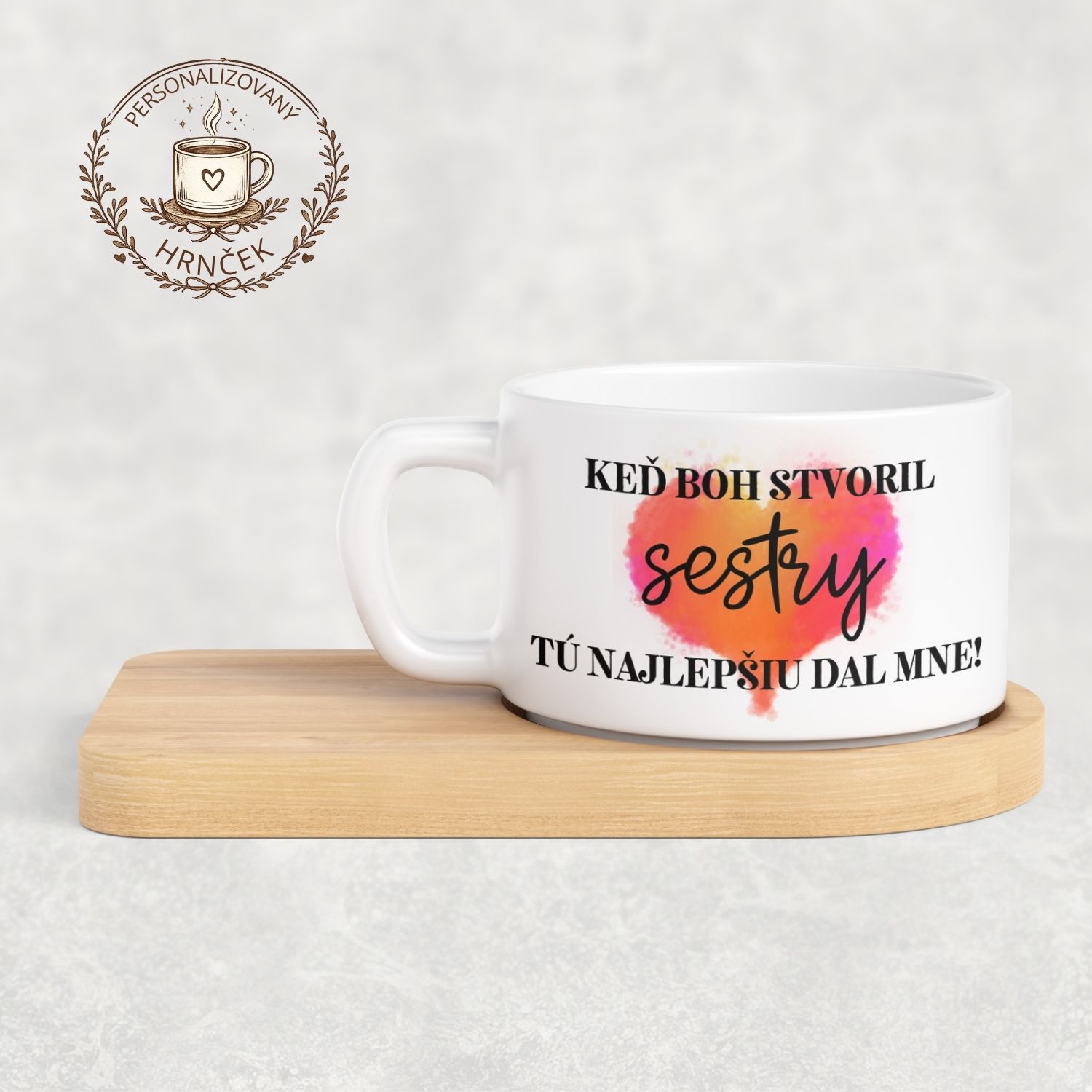 Krásny a láskavý darček pre sestru, ktorý každý deň pripomenie, aké výnimočné miesto má v tvojom srdci. Ideálny na kávu, čaj aj spoločné chvíle.