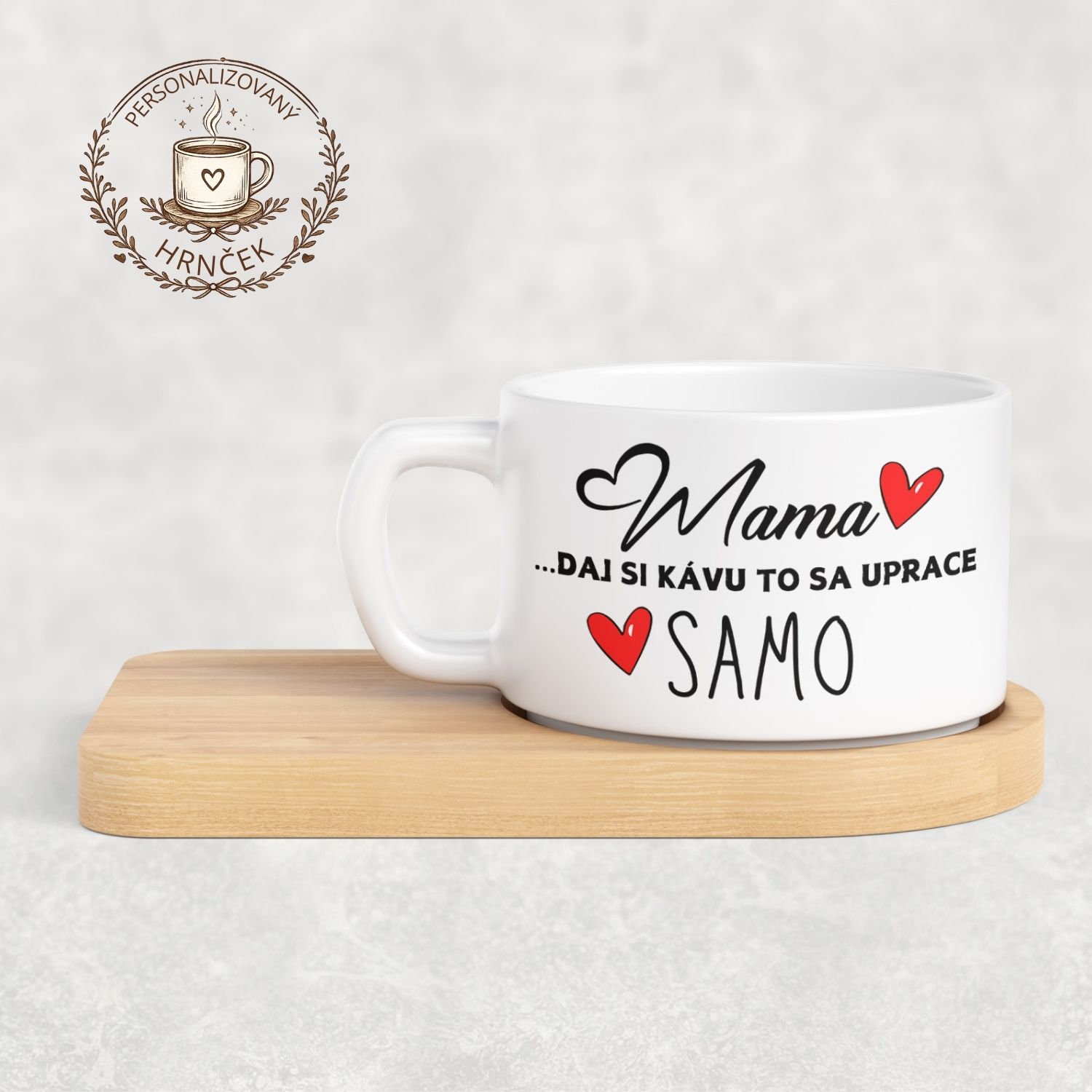 Matný hrnček DUO s bambusovou podšálkou – Mama, daj si kávu