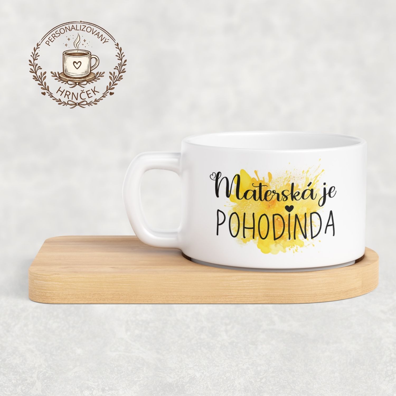 Matný hrnček DUO s bambusovou podšálkou – materská je pohodinda
