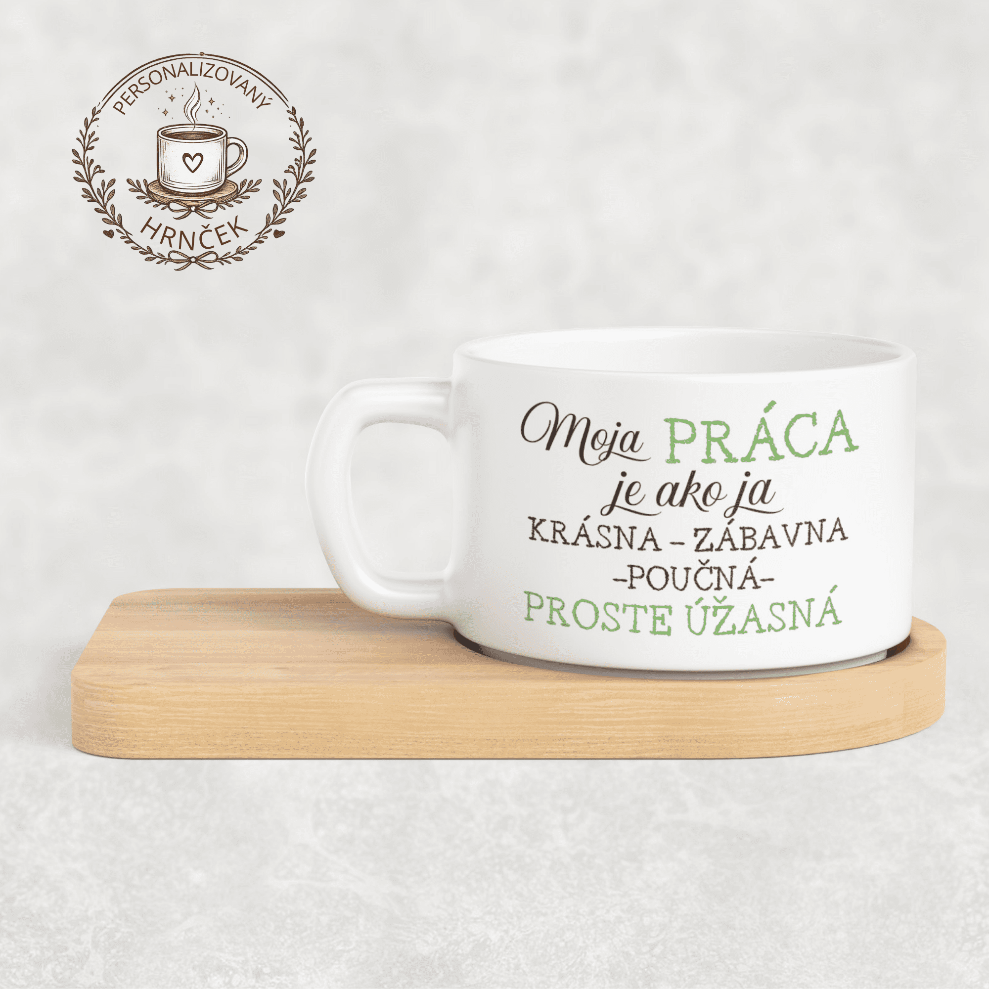 Matný hrnček DUO s bambusovou podšálkou – Moja práca je..