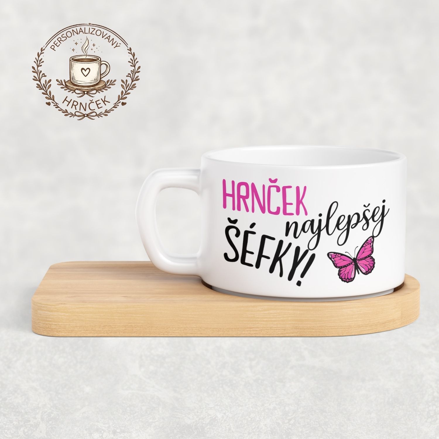Matný hrnček DUO s bambusovou podšálkou – Najlepšej šéfke