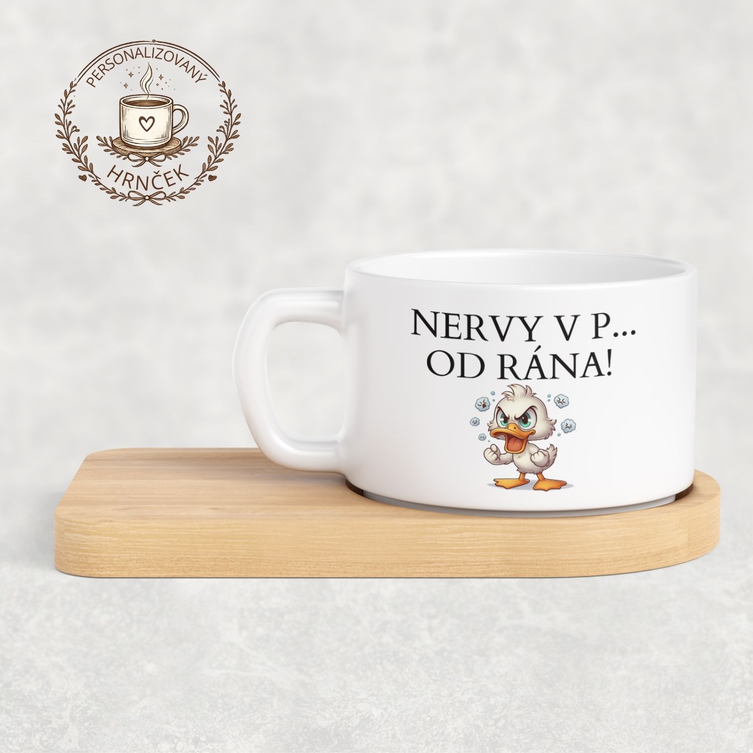 Matný hrnček DUO s bambusovou podšálkou – Nervy v p… od rána