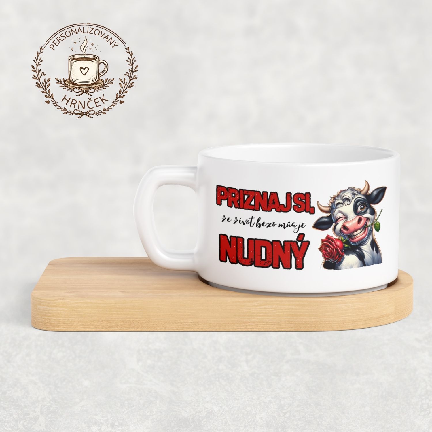 Matný hrnček DUO s bambusovou podšálkou – Priznaj si, že život bezo mňa je nudný