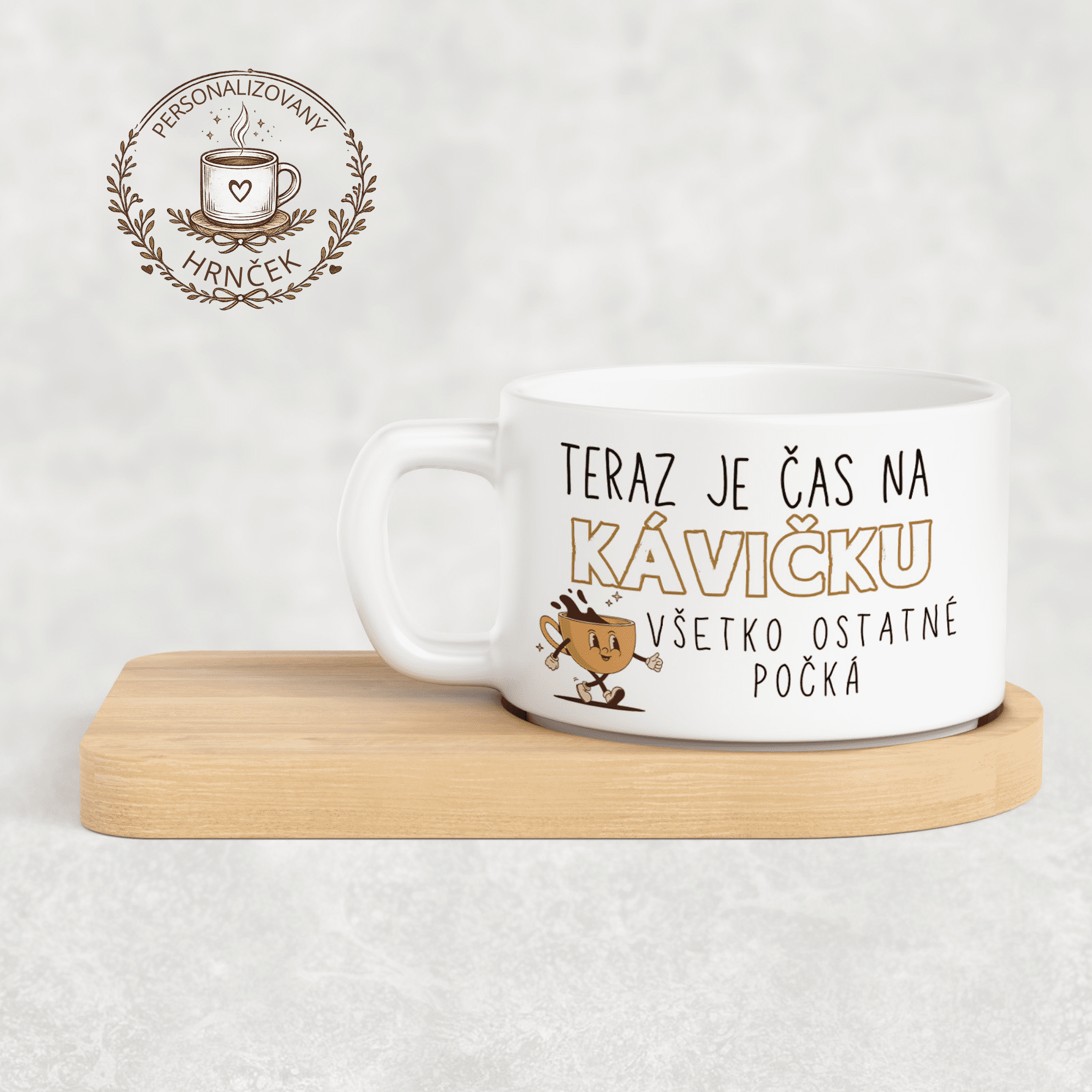 Matný hrnček DUO s bambusovou podšálkou – teraz je čas na kávičku