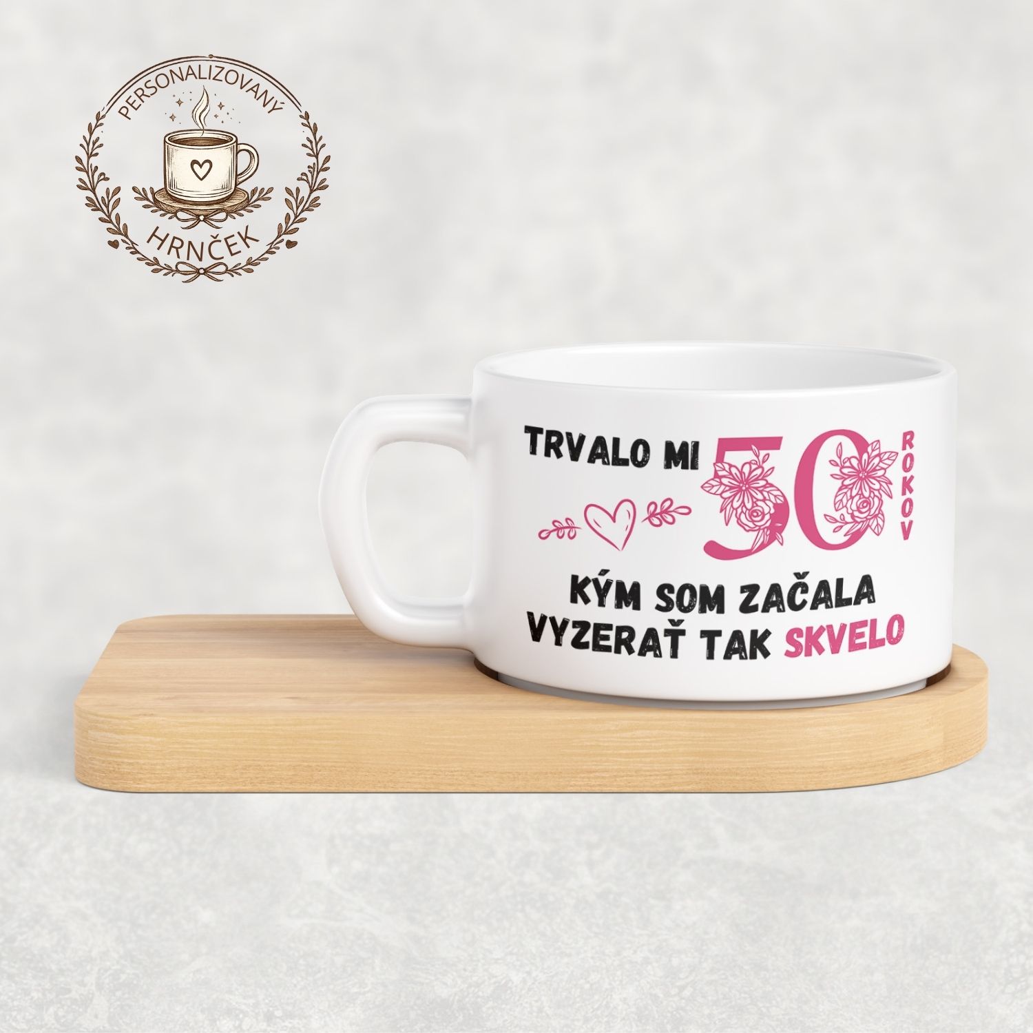 Matný hrnček DUO s bambusovou podšálkou – Trvalo mi XX rokov, kým som začala vyzerať tak skvelo