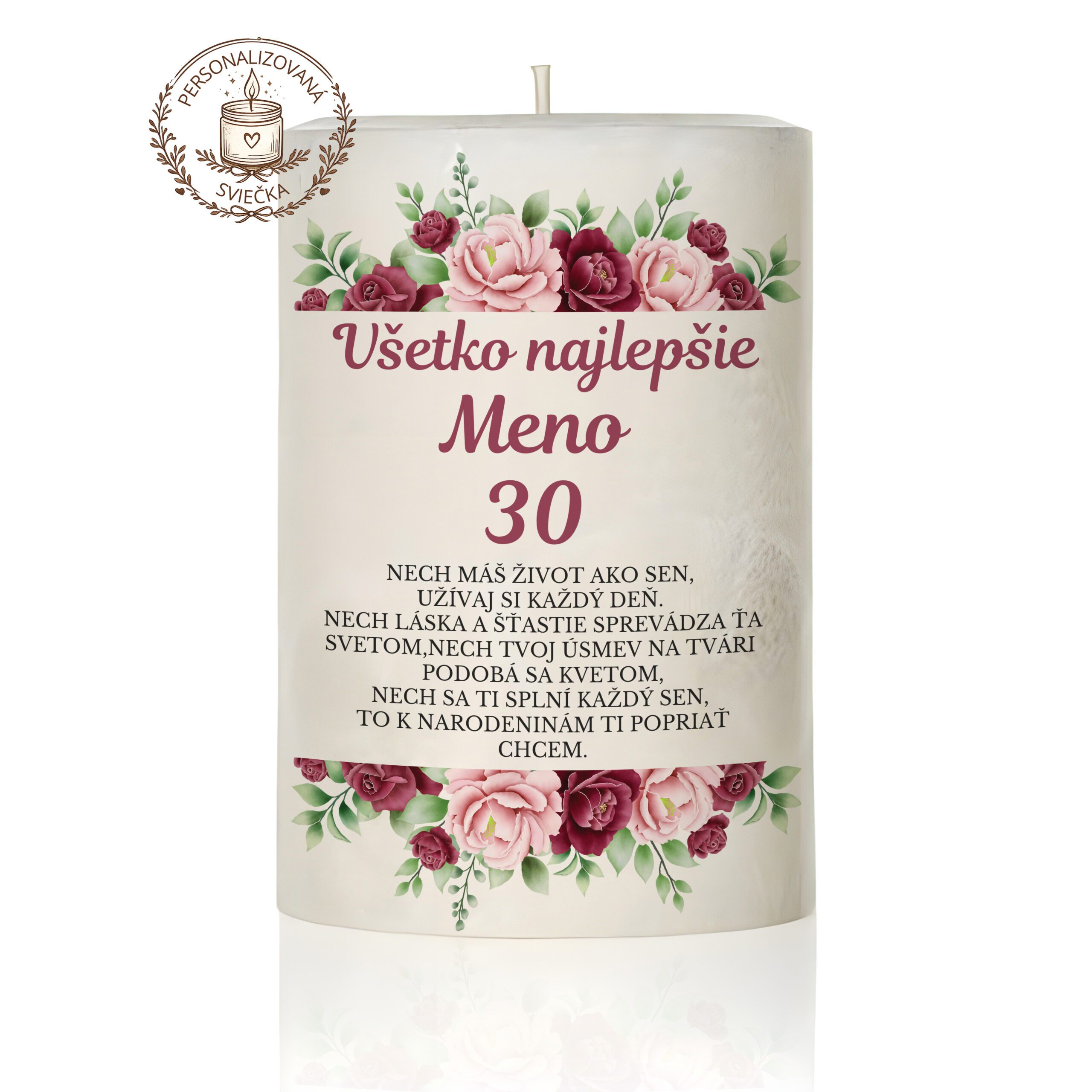 - Verš alebo hlavný text na sviečke – Môžeš napísať verš, prianie alebo jednoduchý text (napr. Všetko najlepšie, Krásne 30. narodeniny).