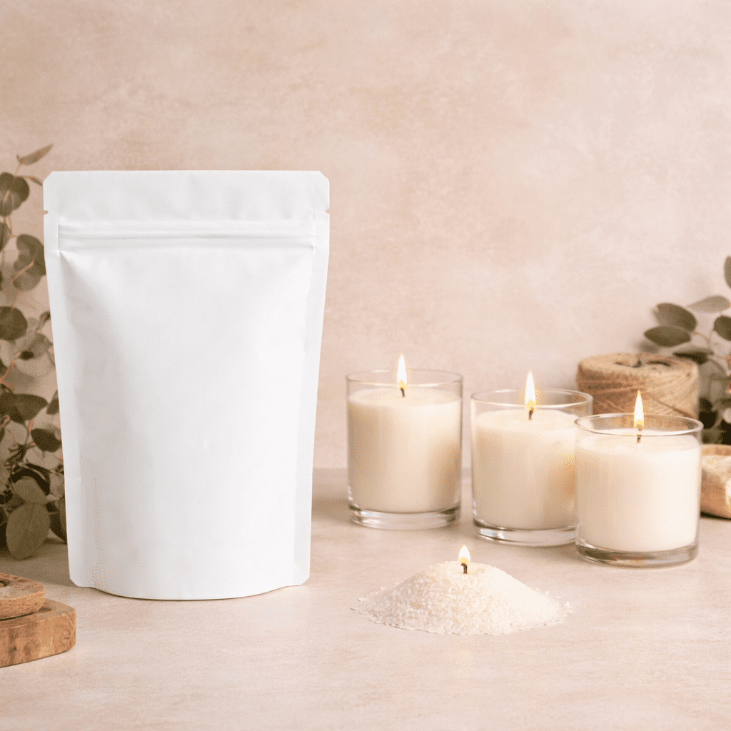 Vosk je vhodný nielen na výrobu sypaných sviečok, ale aj ako povrchová dekorácia. Vytvára jemný efekt snehu alebo drobných kryštálikov, vďaka čomu sviečka pôsobí elegantne a dekoratívne.