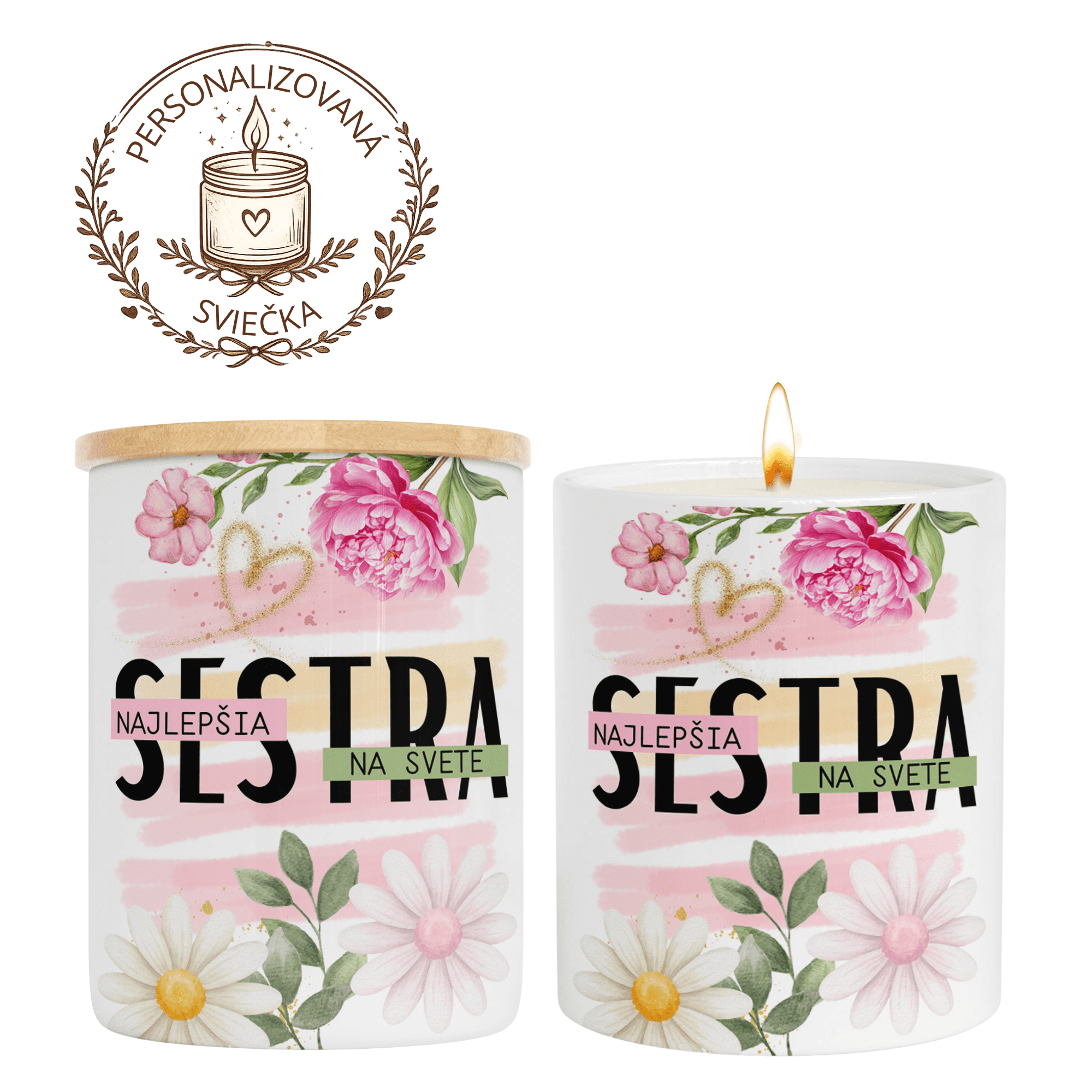 Personalizovaná keramická sviečka „Najlepšia sestra na svete“