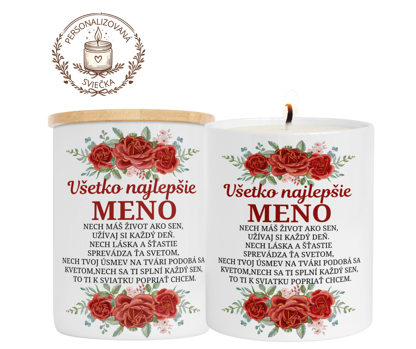 Sviečka nesie meno a verš, vďaka čomu je ideálna ako darček k sviatku srdcom vybraný, nie obyčajný.