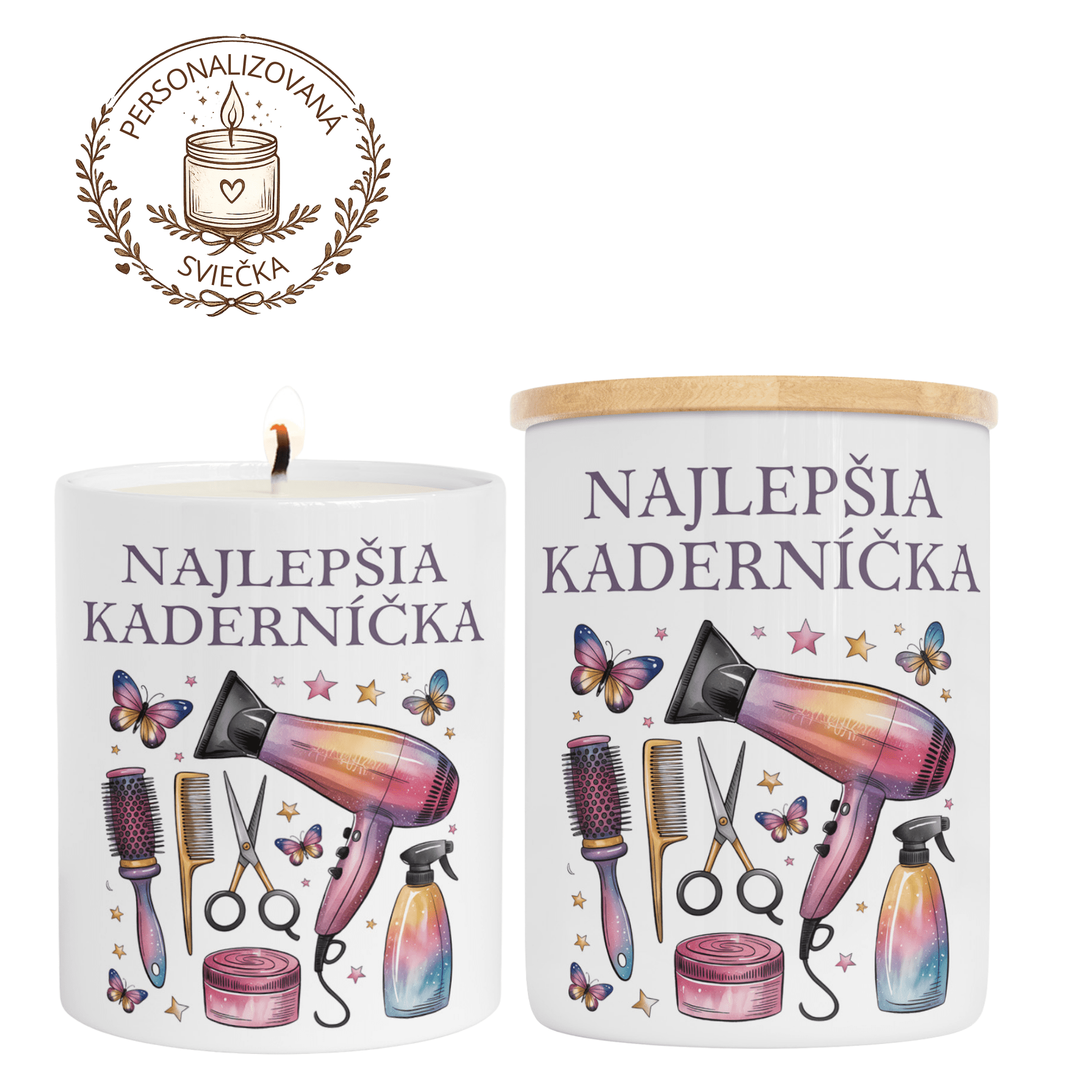 Hľadáte milý a zároveň originálny darček pre kaderníčku, ktorá má zlaté ruky a cit pre detail? Táto personalizovaná sviečka je krásnym poďakovaním aj pozornosťou, ktorá poteší po dlhom dni v salóne.