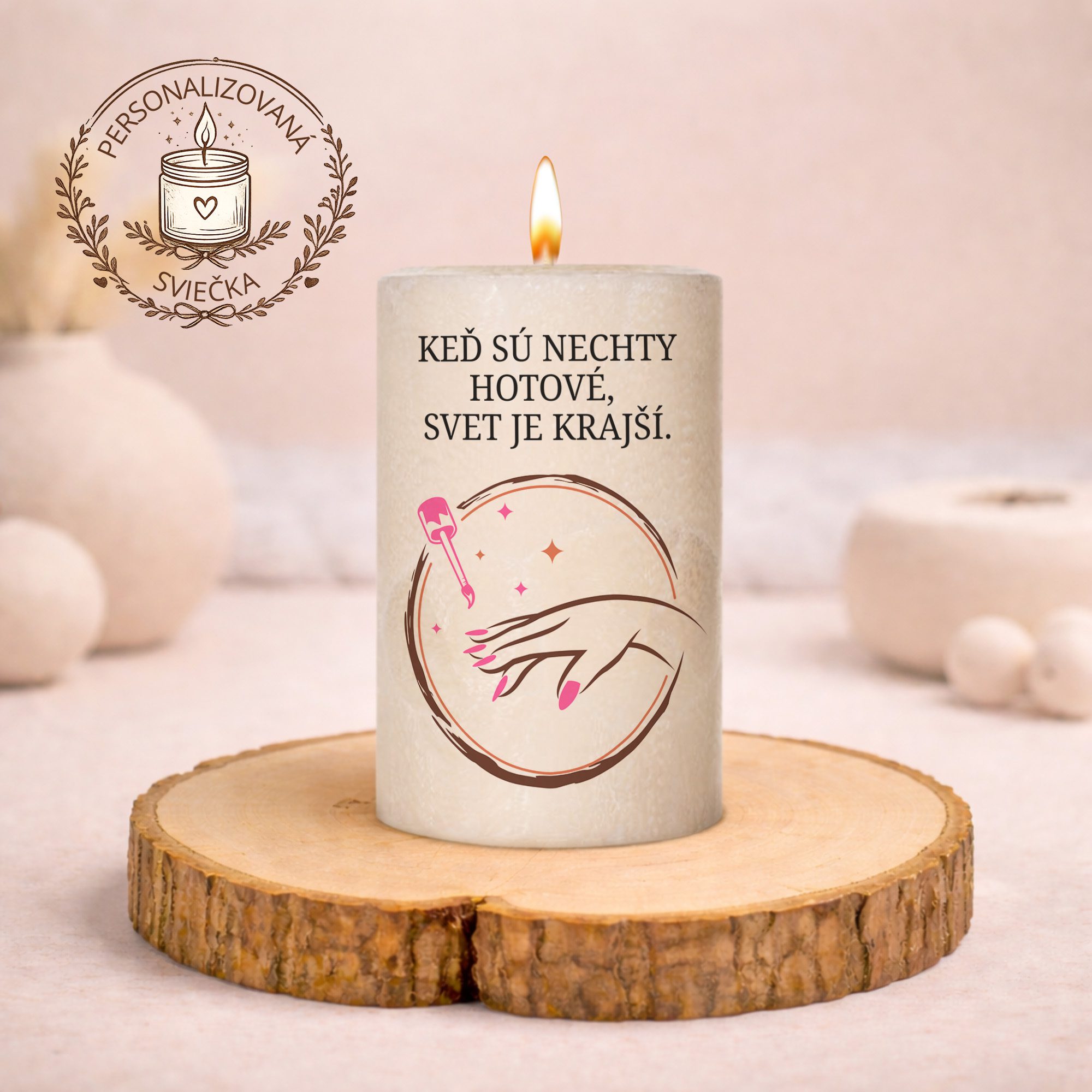Personalizovaná sviečka pre nechtárku – keď sú nechty hotové, svet je krajší