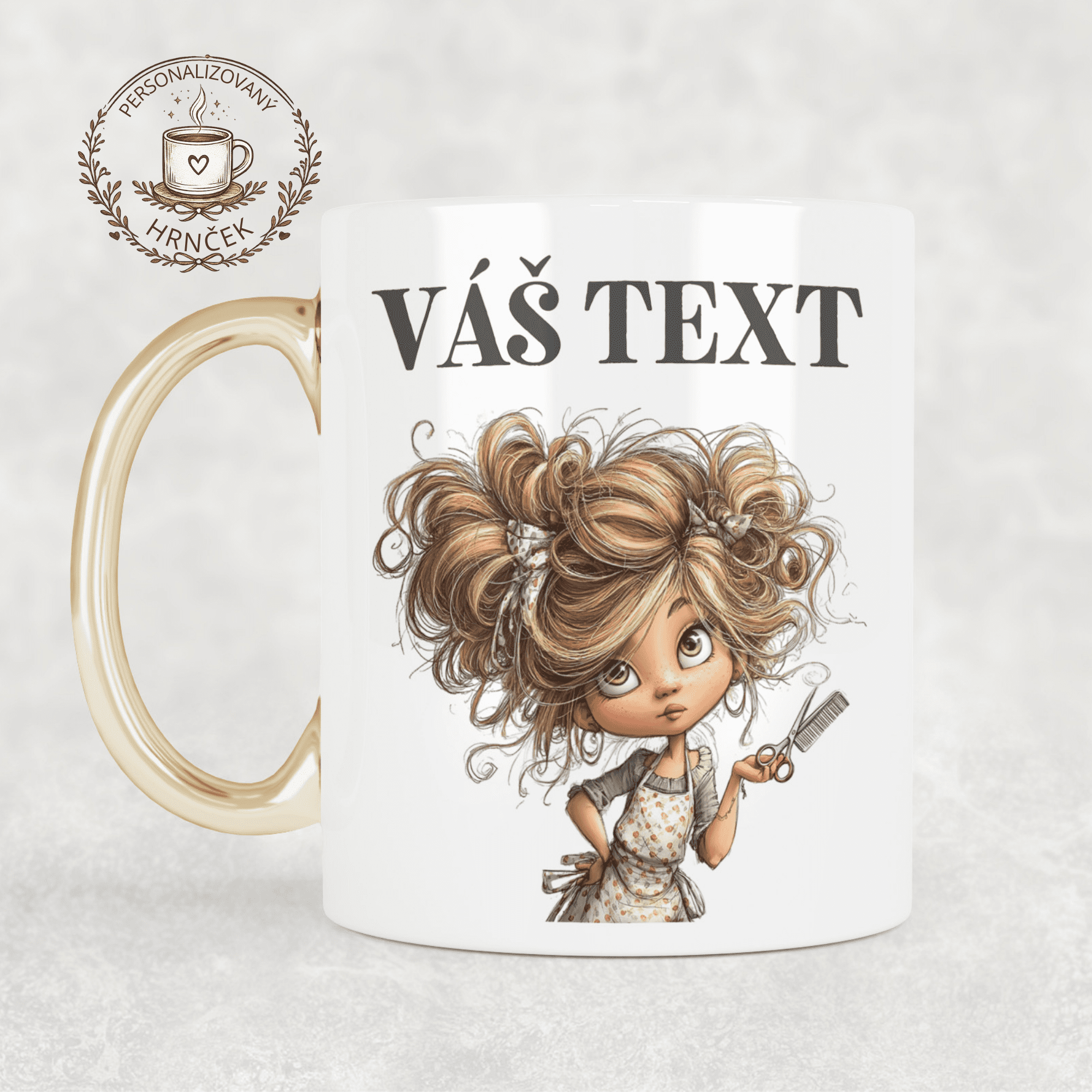 Tento elegantný hrnček je milým a osobným darčekom pre kaderníčku, ktorá má zlaté ruky a srdce na správnom mieste. Ideálny na rannú kávu, poobedný čaj alebo krátku chvíľku oddychu medzi zákazníčkami.